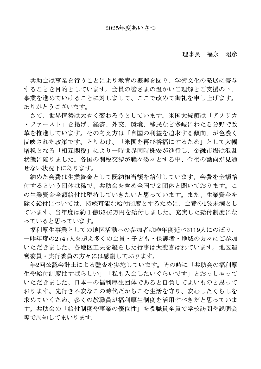 教職員の皆様が生き生きと豊かな生活を送れるように